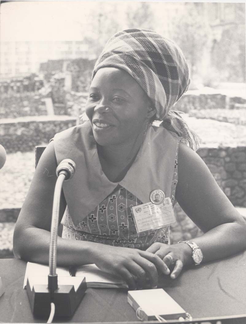 Representante de la República Unida de Tanzania ante el foro del Año Internacional de la Mujer, México, 27 de junio de 1975. Archivo Gráfico de «El Nacional». Fondo Temático, sobre 0024-A (0109). Secretaría de Cultura-INEHRM-FOTOTECA