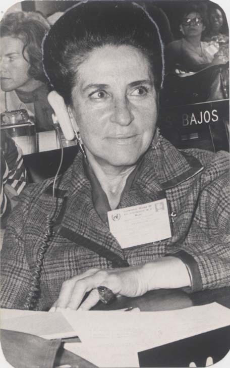 Griselda Álvarez, Secretaría General de Conferencia Mundial del Año Internacional de la Mujer, México, 25 de junio de 1975. Archivo Gráfico de «El Nacional». Fondo Temático, sobre 0024-A (082). Secretaría de Cultura-INEHRM-FOTOTECA.
