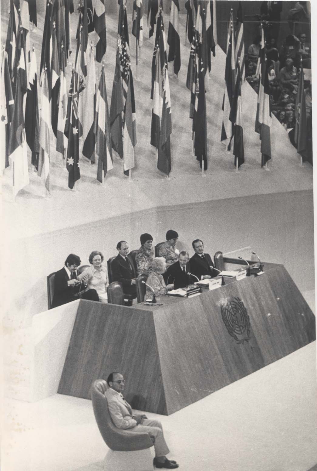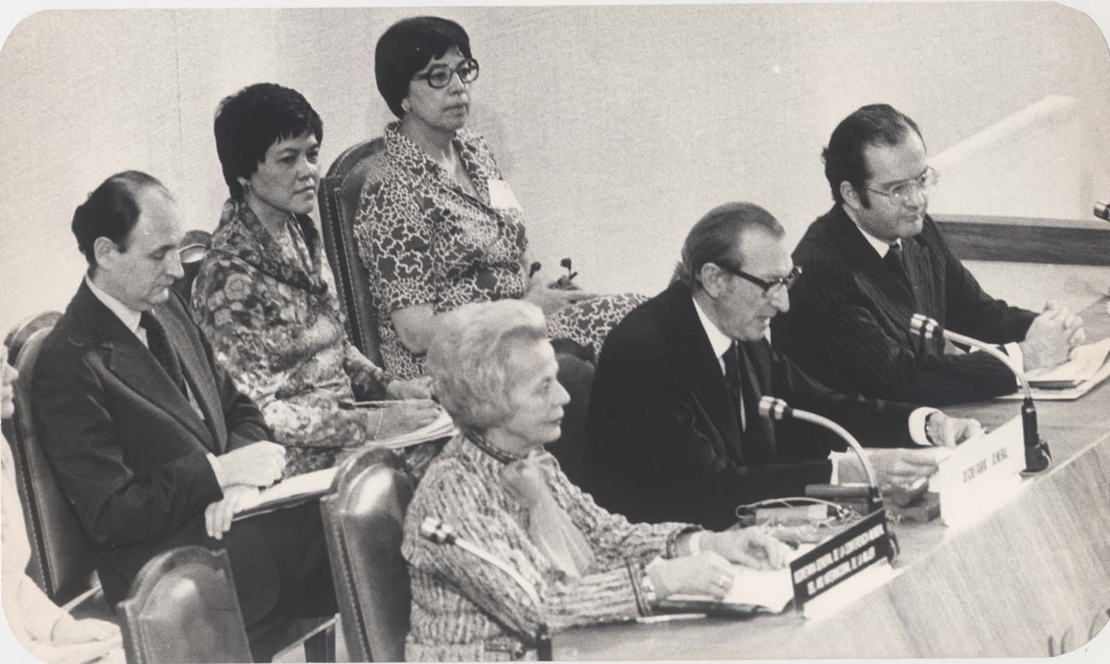 El secretario… delegados en la Conferencia Inaugural del Año Internacional de la Mujer. 19 de junio de 1975. Archivo Gráfico de «El Nacional». Fondo Temático, sobre 0024-A (010). Secretaría de Cultura-inehrmfototeca.