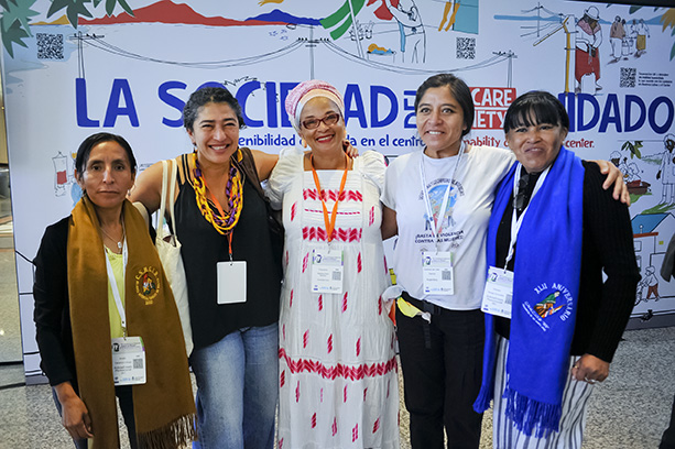 Defensoras de la vida, de la paz y de los territorios participan en la XV Conferencia Regional sobre la Mujer de América Latina y el Caribe. En esta Conferencia se adoptó el Compromiso de Buenos Aires que establece un paradigma: la sociedad de cuidado, que prioriza la sostenibilidad de la vida y el cuidado de las personas y del planeta.