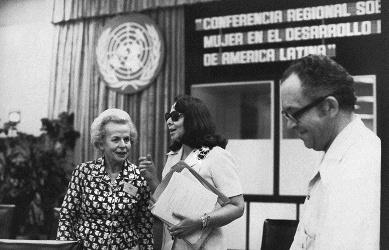 Helvi Sipilä, subsecretaria general de las Naciones Unidas, junto a Vilma Espín, presidenta de la Federación de Mujeres Cubanas, durante la Primera Conferencia Regional sobre la Integración de la Mujer en el Desarrollo Económico y Social de América Latina en 1977.