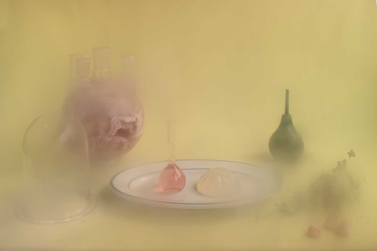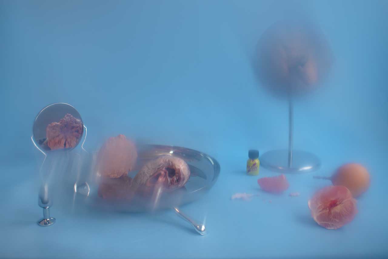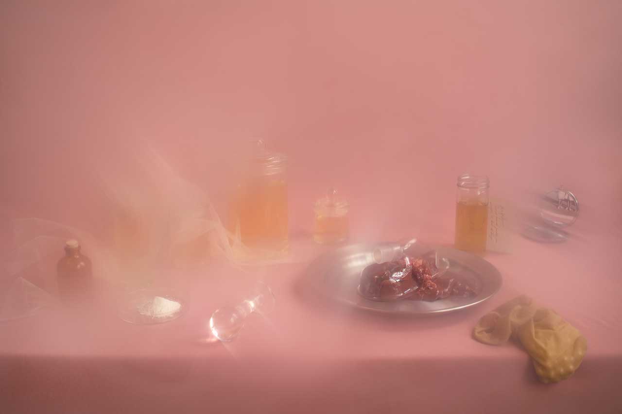 Formas indetectables pone sobre la mesa algunos indicios de lo que es vivir con vih mediante una reinterpretación del género de la naturaleza muerta. Estas imágenes celebran la belleza de las cosas, pero también revelan cuán desconcertantes pueden ser la pérdida y el duelo. A lo largo de este proceso, la opacidad me ha llevado a comprender que aquello que se escapa a la mirada puede ser tan revelador como lo que está a plena vista. Revelarse y ocultarse, como lo hace el virus en nuestros cuerpos: encarnando lo que no se puede representar. Es como cuando el miedo llega a ser tanto que impide enfocar la vista, o los fármacos, que alteran nuestra percepción al tomarlos día a día. Atravesar el velo de estos objetos —difuminados por un filtro de látex— nos conduce a una única lucha: la búsqueda de la belleza y el gozo como justificación de la existencia.