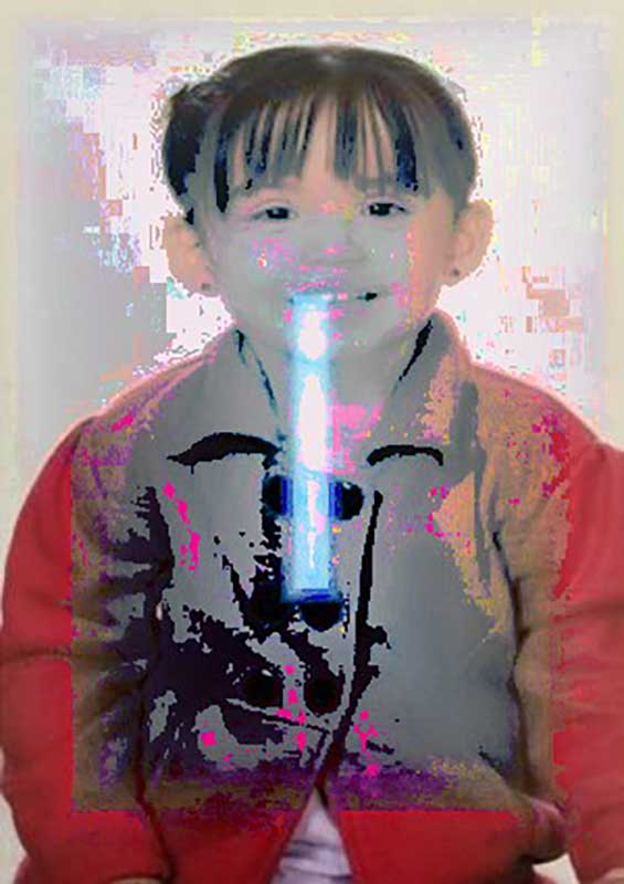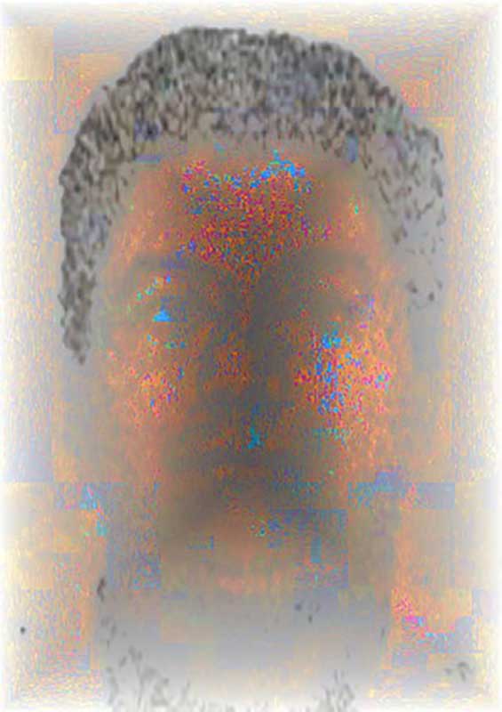 Las fotografías tamaño infantil resultan ser distorsiones pixeladas que evocan narrativas de pérdida. La instrucción del algoritmo suele provocar un centro vacío donde la identidad física de las personas se difumina con su memoria digital. La serie busca explorar las posibilidades de manipulación del píxel como materia prima de la fotografía digital, recuperando la aleatoriedad propia del manejo del grano en la película. Una mirada que opere con dicho objetivo debe ser capaz de difuminar los límites entre realidad y virtualidad.