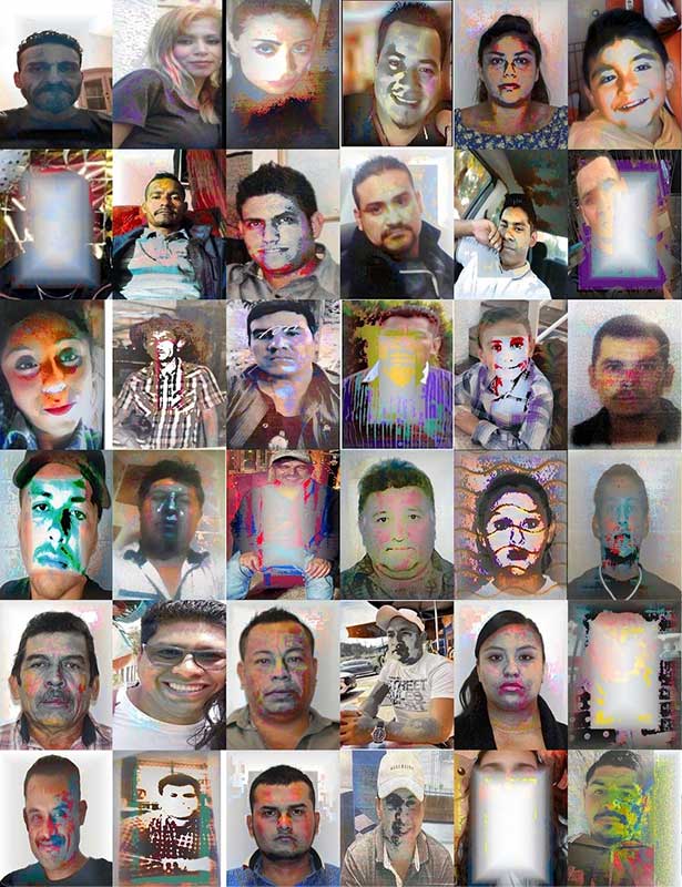 El proyecto consiste en una serie de 3,900 retratos obtenidos del Registro Nacional de Personas no Localizadas. Dispuestos como mosaicos, cada uno de ellos fue generado por un algoritmo que reordena los píxeles arrojados por Google Imágenes al buscar el nombre de las personas. Cuanta más información exista sobre ellas, más fiel será su imagen.